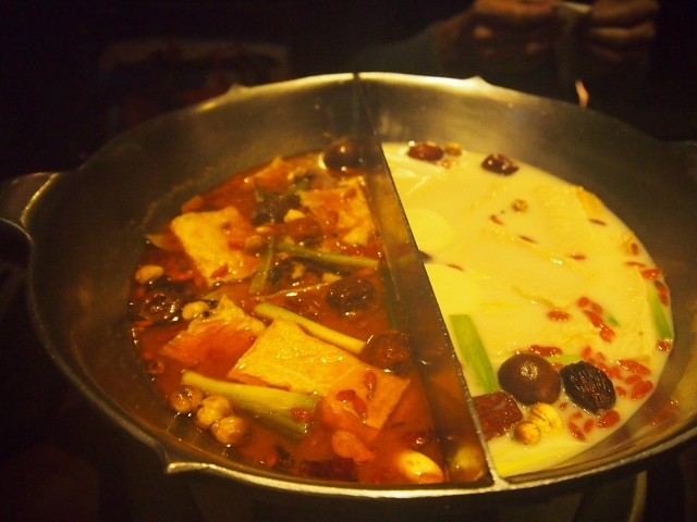 人気の2種類の味のお鍋が楽しめる「鴛鴦鍋(おしどり鍋)」は肌によい漢方とコラーゲンたっぷりの白いスープと、刺激的な辛さがクセになる赤いスープがついてきて、1人あたり139元+テーブル1卓ごとに180元が別途かかります。