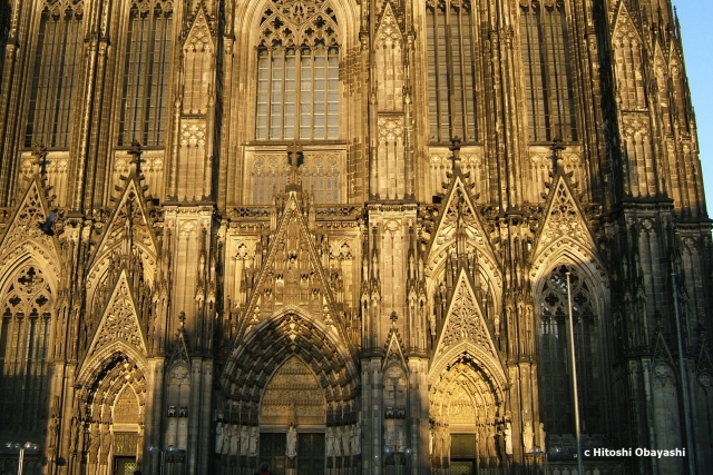 ケルンはベルリンとパリの中間点に位置し、両都市とは直通列車で結ばれています。ドイツ鉄道DBのケルン中央駅を出ると、無意識のうちに視線は上を向いてしまうようです。駅前の広場の真正面には巨大な聖堂が聳え立っているのですから、極めて自然なアクションということができます。