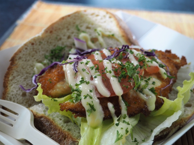 現在のところ、イベント会場でしか食べることができないヨーロップ・セントラル・キッチンのシュニッツェルのサンドイッチ。フードトラックの出店予定はヨーロップ・セントラル・キッチンのフェイスブックページで随時お知らせしているとのこと。