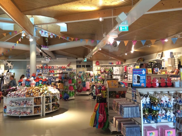 郵便局の向かいにある建物はお土産やさん。広い店内にはたくさんのムーミングッズがずらり! 所せましとさまざまなムーミングッズが並べられています。旅の思い出をお持ち帰りください...♪