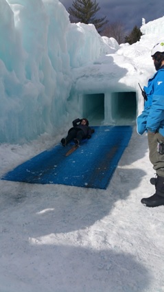 そして場内には、一番人気のアトラクション、氷のスライダーが。大人も子供もできるので、是非お子さん連れの方は、一緒に体験して欲しいスライダーです。内側も完全な氷で中々体験できない空間。大人も盛大な叫び声をあげて滑っていました。