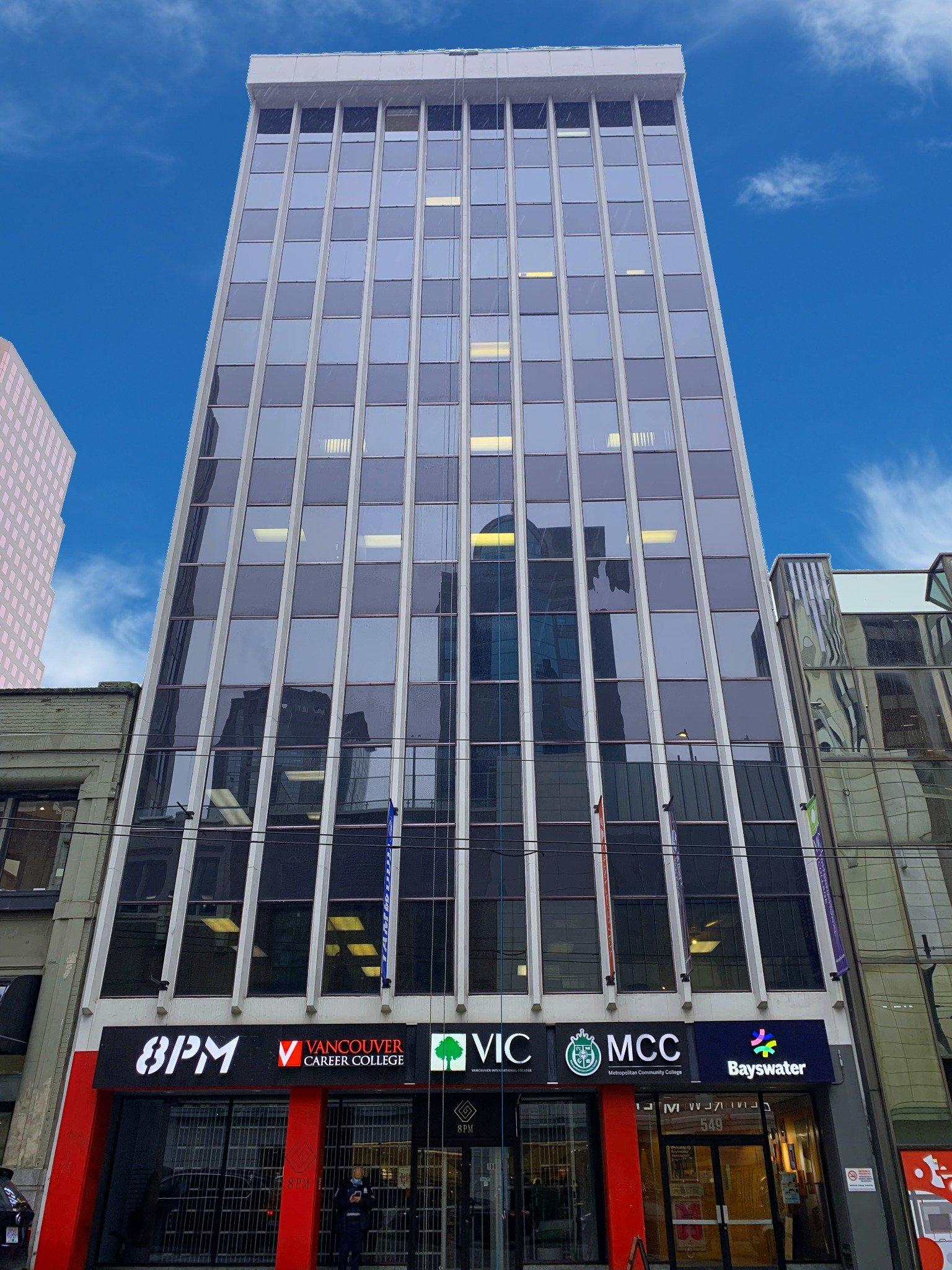 Bayswater Vancouverは、大規模語学学校グループBayswaterEducationのバンクーバー校で、世界各国からの留学生に質の高いコースや個別指導し、学習に集中できる環境を整えています。グランビル駅から徒歩3分の便利な立地で、近辺にはショッピングモールやカフェ、レストランなどがあり利便性に優れ、観光地へも徒歩で行くことができます。